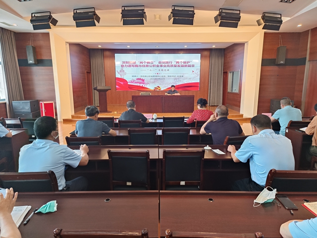 7月22日,市公積金中心主任、黨組書記劉玉波以《深刻把握“兩個確立” 自覺踐行“兩個維護” 奮力譜寫我市住房公積金事業高質量發展新篇章》為題,為中心全體黨員講授“七一”專題黨課。