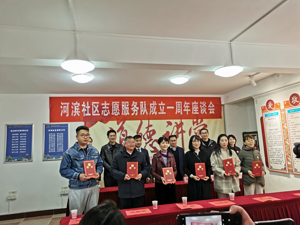 市委臺辦副主任王思遠為河濱社區志愿服務隊入駐河濱社區新時代文明實踐站掛牌,為“我為志愿服務獻一計”的獲獎人員頒發社區智囊團聘書。