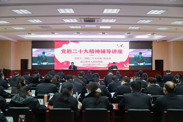 市檢察院黨組成員、政治部主任、機關黨委常務副書記夏海兵在主持講座時,要求全市檢察干警把學習宣傳貫徹黨的二十大精神作為首要政治任務,結合即將開展的主題教育,全面系統學、堅持不懈學、聯系檢察工作學,把思想和行動統一到黨的二十大精神和各項工作部署上來,切實以高質量檢察履職為現代化新港城建設提供有力法治保障。