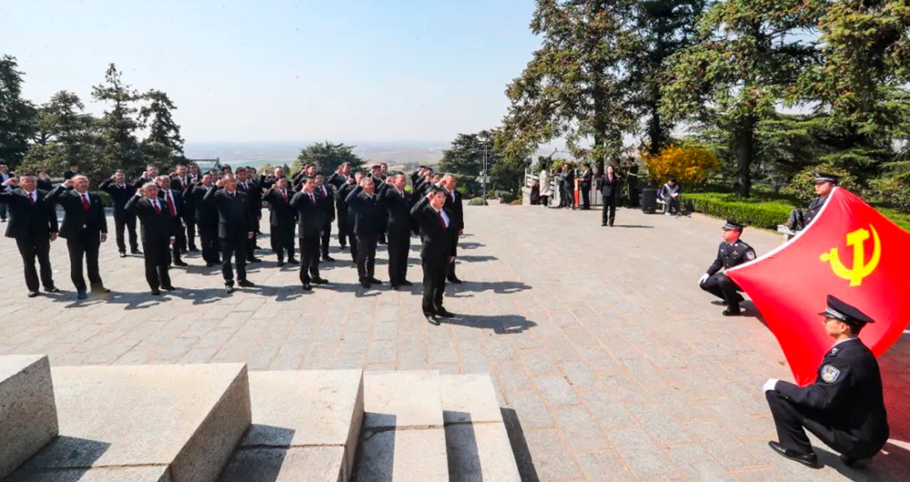 4月1日上午,市中級人民法院組織黨員干警代表赴贛榆抗日山烈士陵園,開展“緬懷先烈志 鑄就法治魂”主題黨日暨黨組理論學習中心組現場研學活動。通過實地場景緬懷革命先烈,傳承紅色基因,凝聚奮進力量。市中院黨組書記、院長劉振等院領導,部門負責人及黨員干警代表等40余人參加活動。